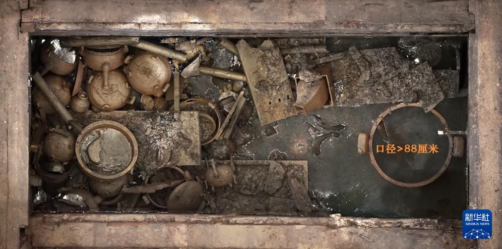 安徽淮南武王墩一號墓東一室文物出土情況(資料照片)。新華社發(安徽省文物考古研究所供圖)