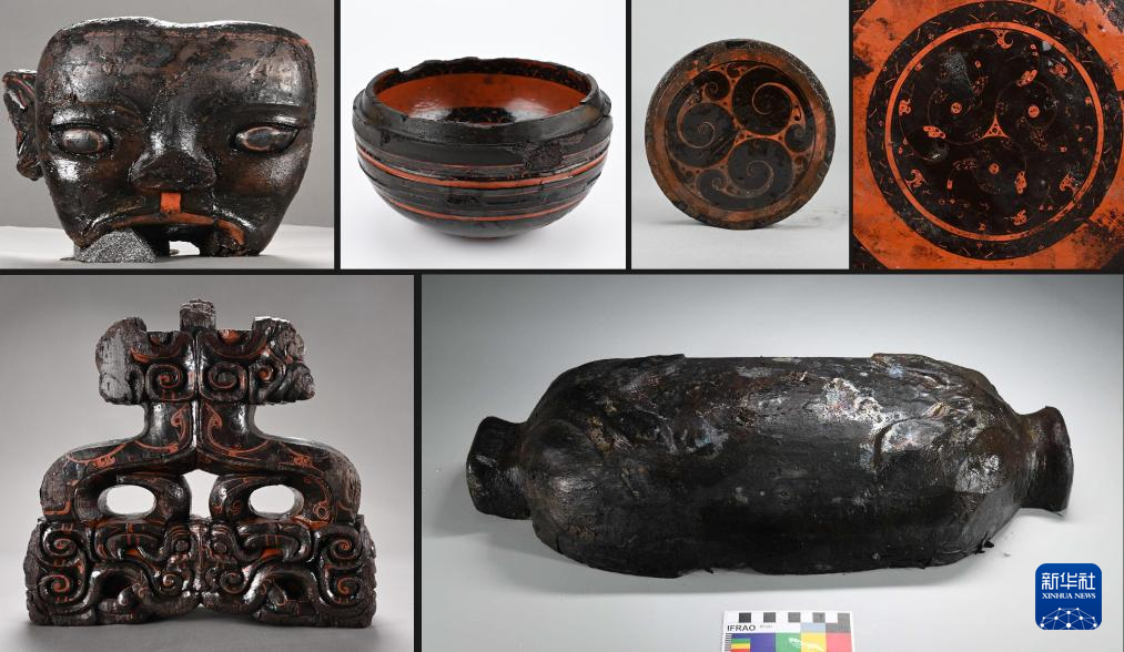 安徽淮南武王墩一號墓出土的部分漆器(拼版照片,資料照片)。新華社發(安徽省文物考古研究所供圖)