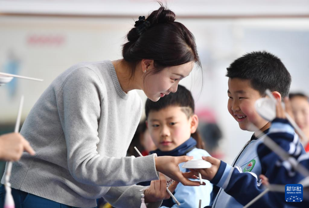 3月18日,常德絲弦藝術劇院“90后”青年演員代表謝顏竹在常德市鼎城區花船廟小學教孩子們學習常德絲弦。
