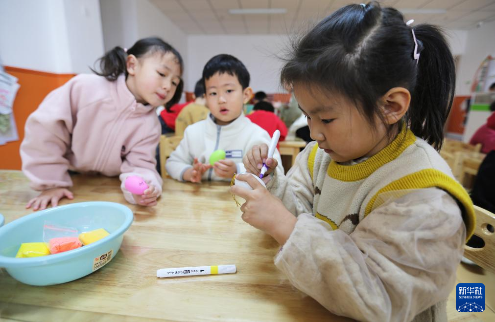 3月20日,甘肅省定西市安定區實驗幼兒園的小朋友在繪彩蛋。