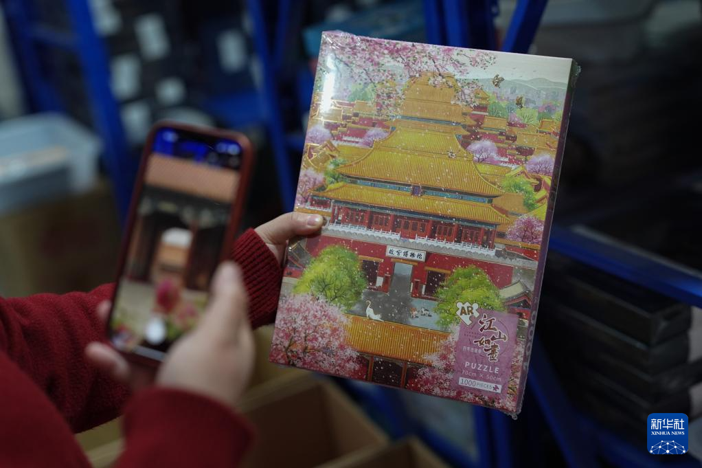 3月20日,工作人員展示一款與故宮博物院聯名推出的文創拼圖。