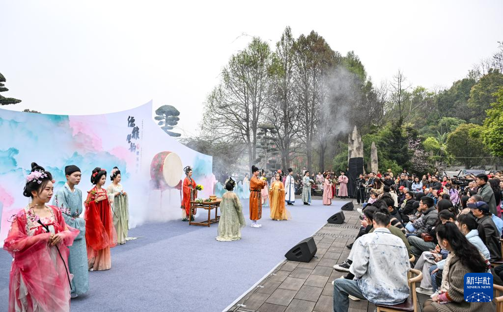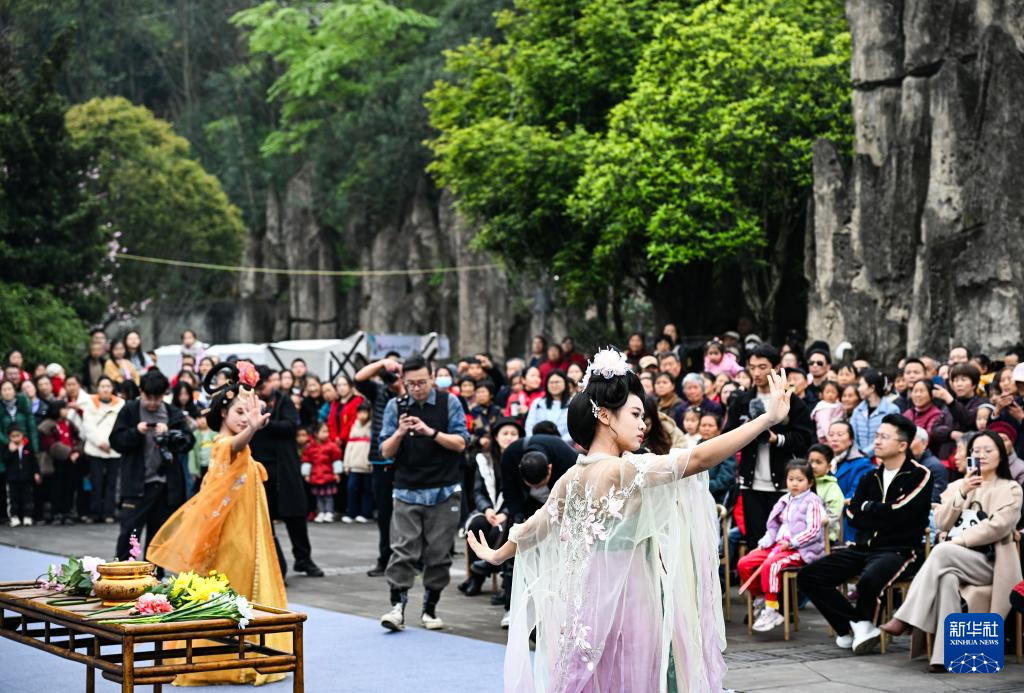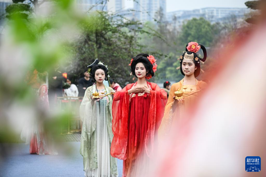 這是3月22日在重慶璧山秀湖公園拍攝的“儒雅璧韻·璧玉唐禮”傳統文化禮儀展示活動現場。