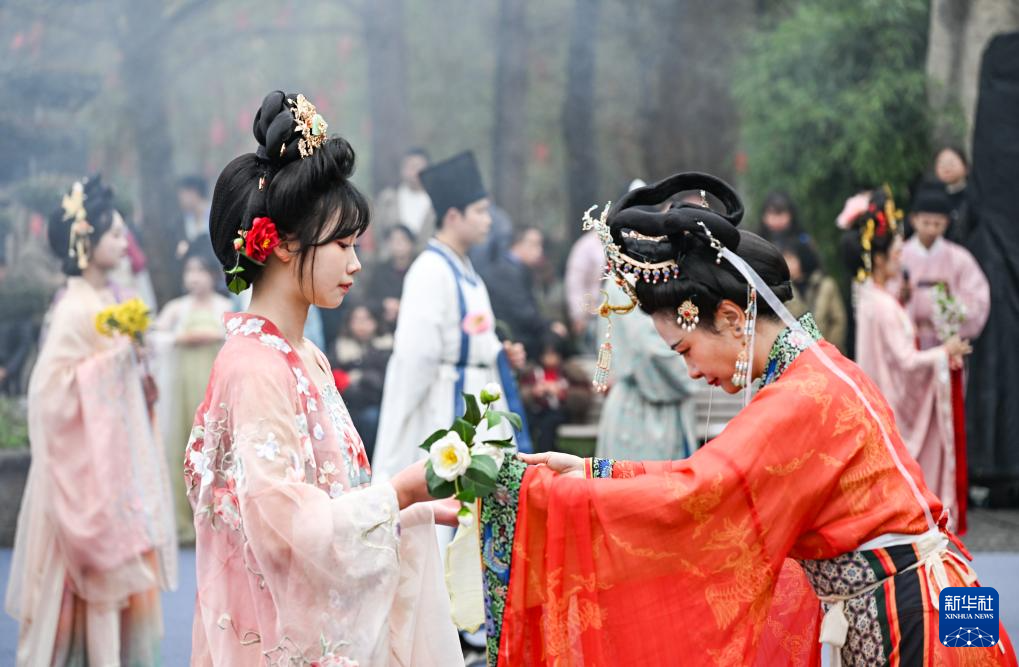 當日,重慶市璧山區在秀湖公園舉辦“儒雅璧韻·璧玉唐禮”傳統文化禮儀展示活動,讓觀眾沉浸式觀賞、體驗傳統禮儀,感受中華傳統文化的獨特魅力。