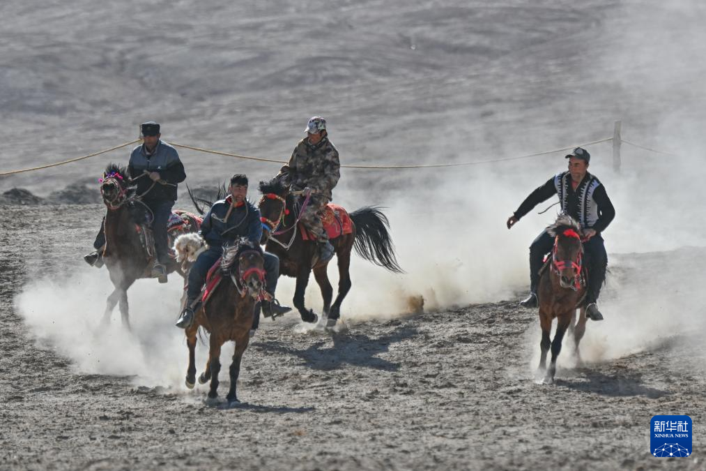 3月22日,在新疆塔什庫爾干塔吉克自治縣瓦恰鄉,當地村民為游客展示非物質文化遺產“叼羊”運動。