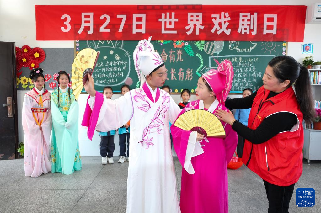 世界戲劇日臨近,各地中小學展開戲劇文化進校園活動,營造濃厚的戲劇文化氛圍,讓學生們感受傳統戲劇文化的魅力。