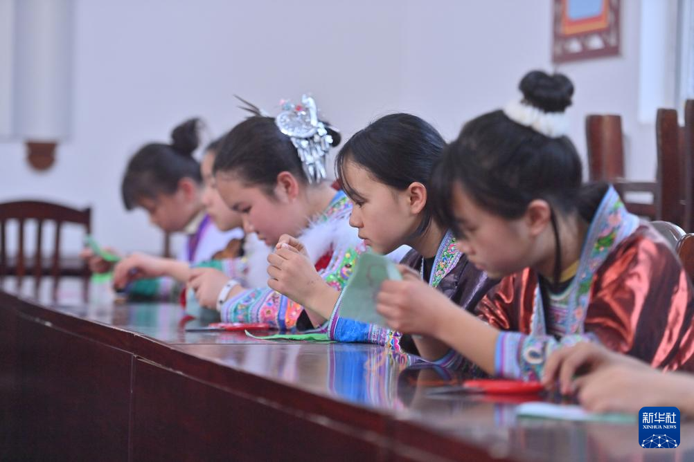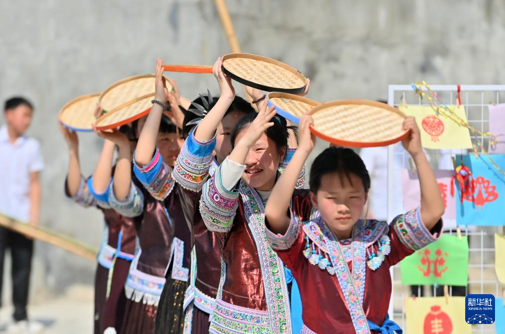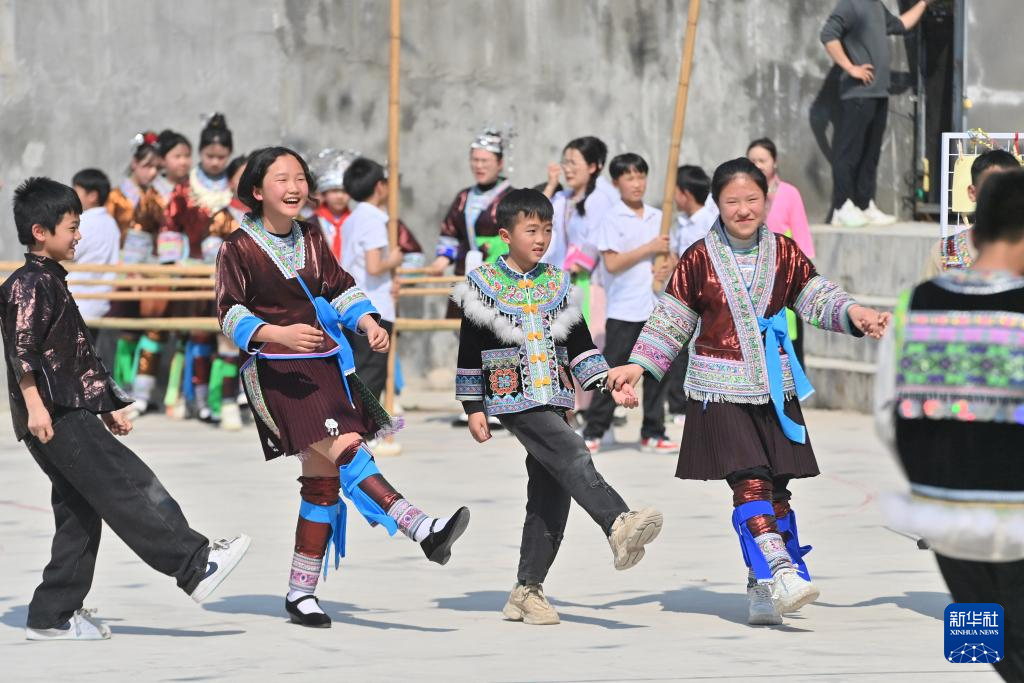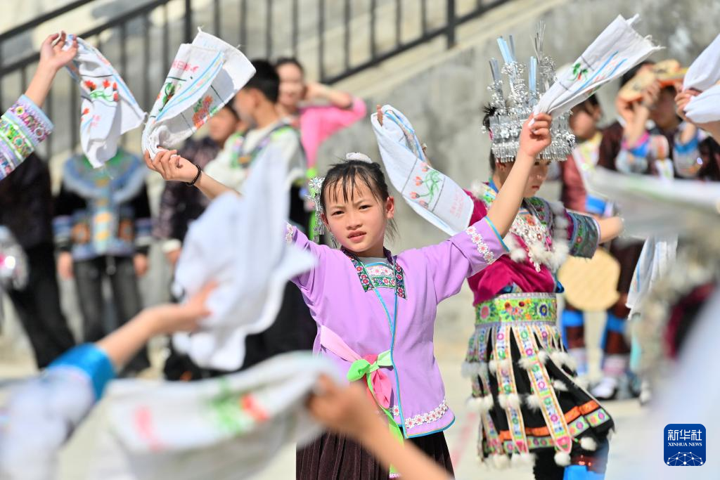 當日,廣西柳州市融水苗族自治縣桿洞鄉中心小學舉行石榴籽連籽·共慶“三月三”鄉村少年宮民族風情文化展演活動,各族少年通過蘆笙踩堂舞、山歌對唱、刺繡等豐富多彩的民俗文化活動,喜迎“三月三”傳統節日。