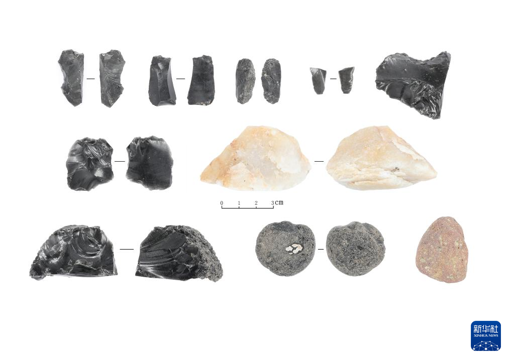 和龍大洞遺址第三期文化層(距今1.7萬年-1.5萬年)出土石制品(資料照片)。新華社發