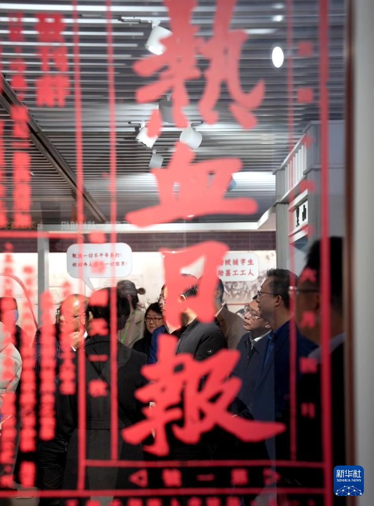 這是3月31日在展覽上拍攝的中國共產黨創辦的第一份日報《熱血日報》(國家一級文物)。