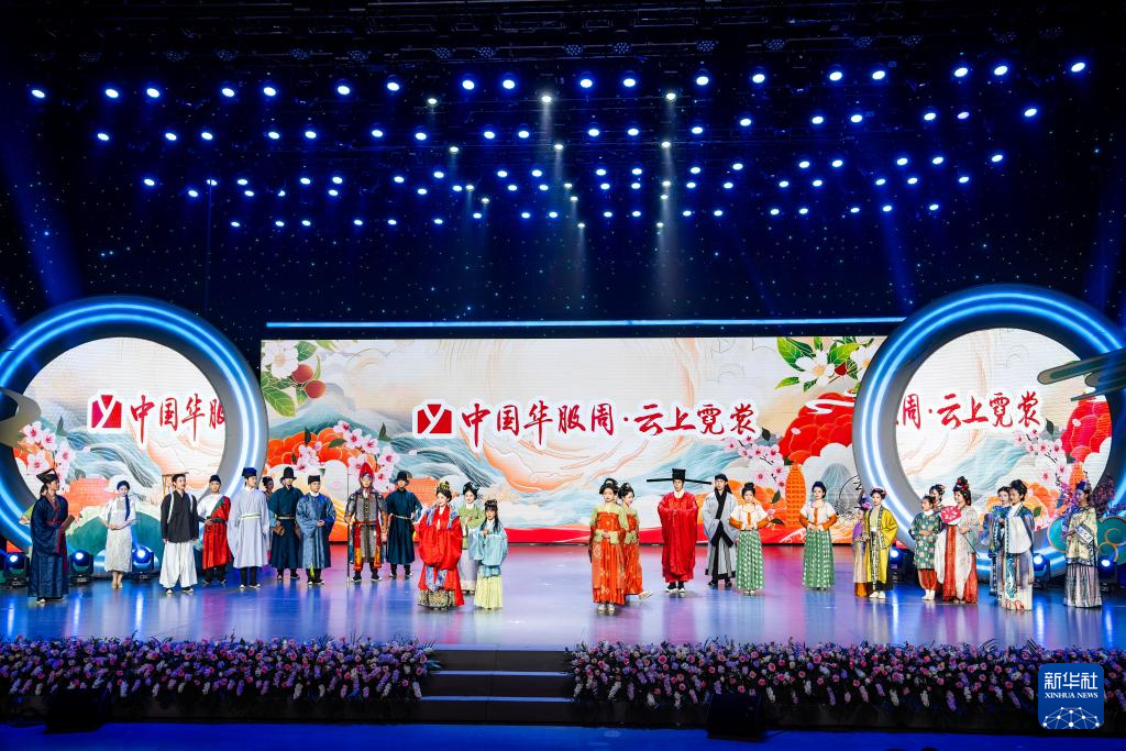當日,2025年“中國華服周·云上霓裳”華服韻典演出在云南昆明舉行。演出分為霓裳繪世、千疊云樞、蘭韻薪傳、重黎未央4個篇章,生動呈現了中華服飾的千年演變和特色民族服飾的絢麗多姿。