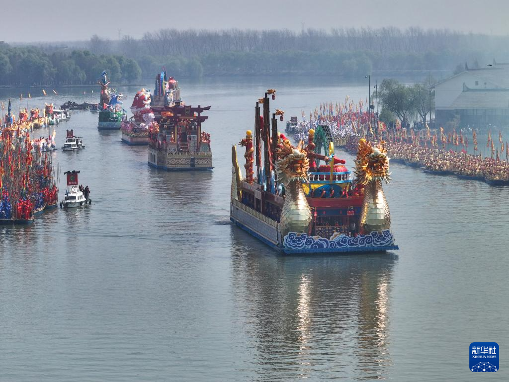 4月6日拍攝的2025泰州姜堰溱潼會船活動現場(無人機照片)。