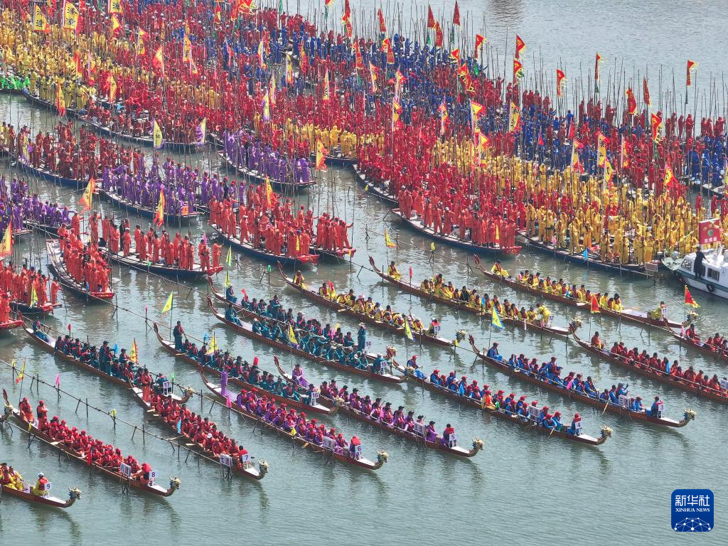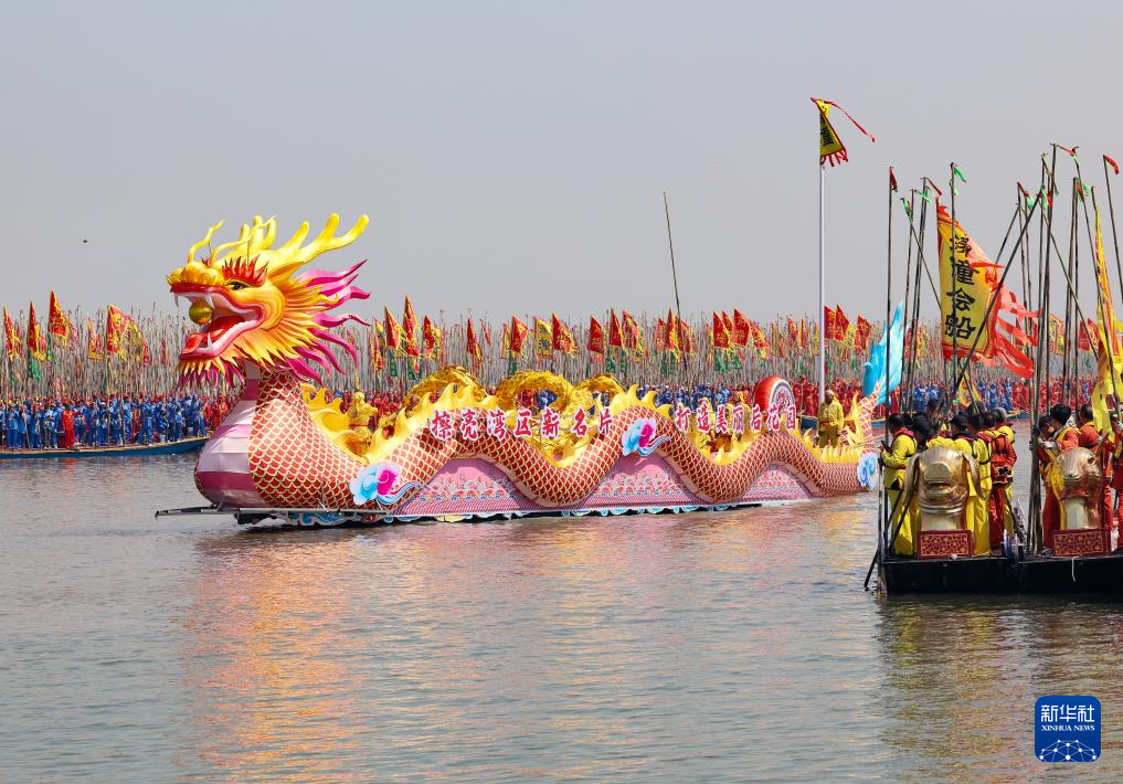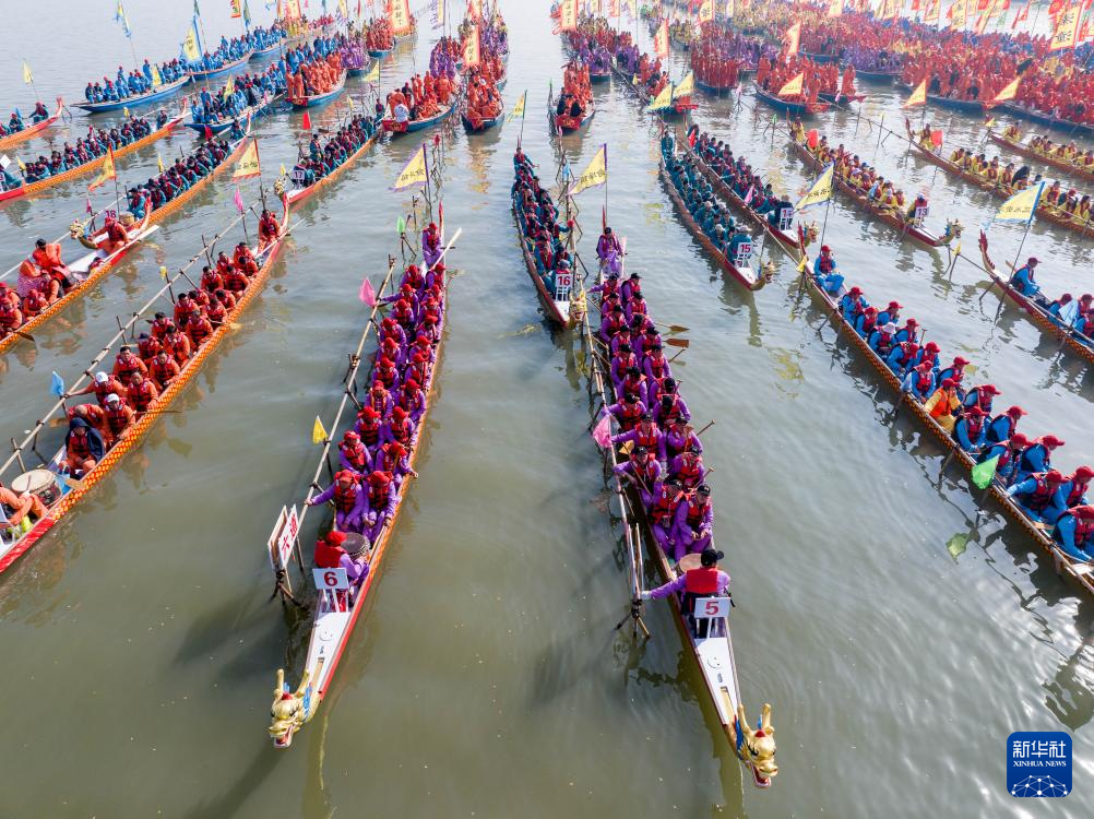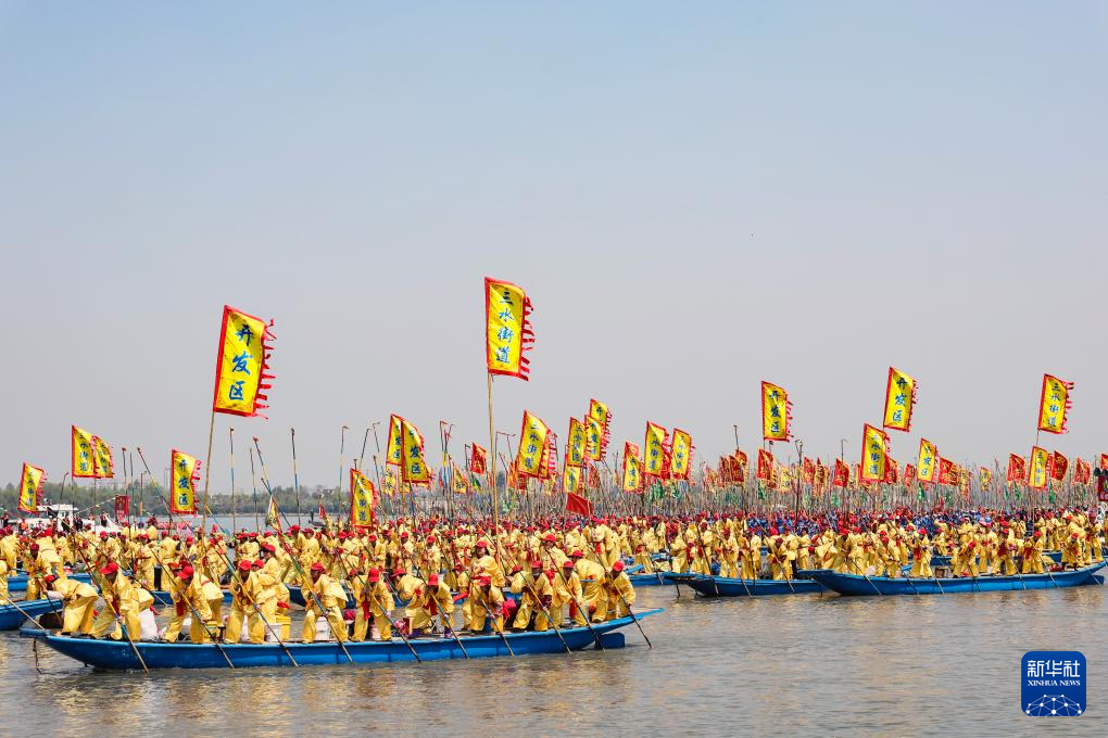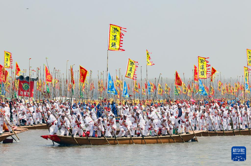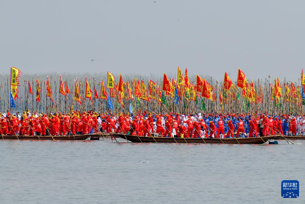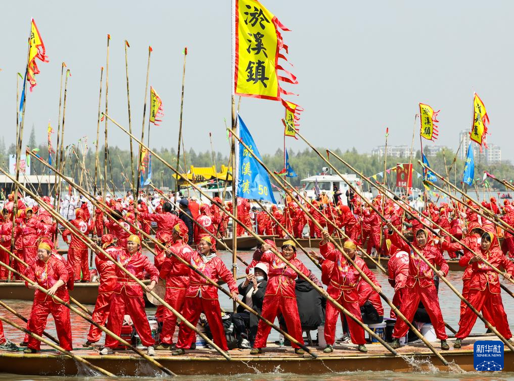 當日,2025泰州姜堰溱潼會船在江蘇省泰州市姜堰區溱湖國家濕地公園開幕,五百多條各式船只和上萬名會船選手飛篙走槳、弄潮擊浪,演繹歷久彌新的民俗畫卷。