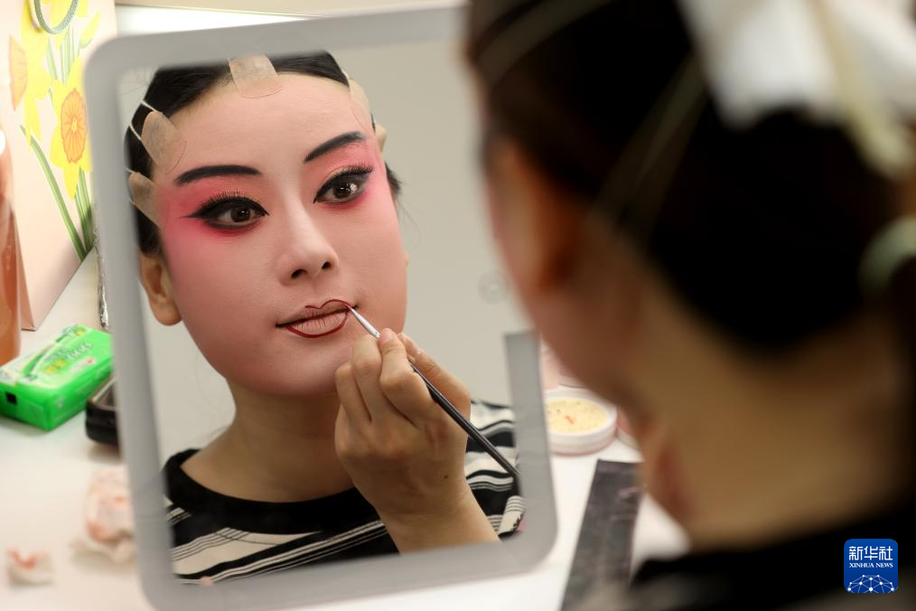 4月5日,在奧地利首都維也納,演員在婺劇《白蛇傳》演出前化妝。