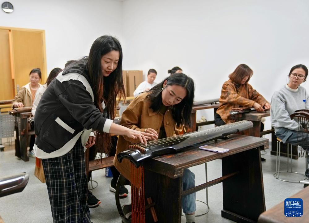 4月7日晚,在上海市群眾藝術館,古琴課程的學員們在上課。