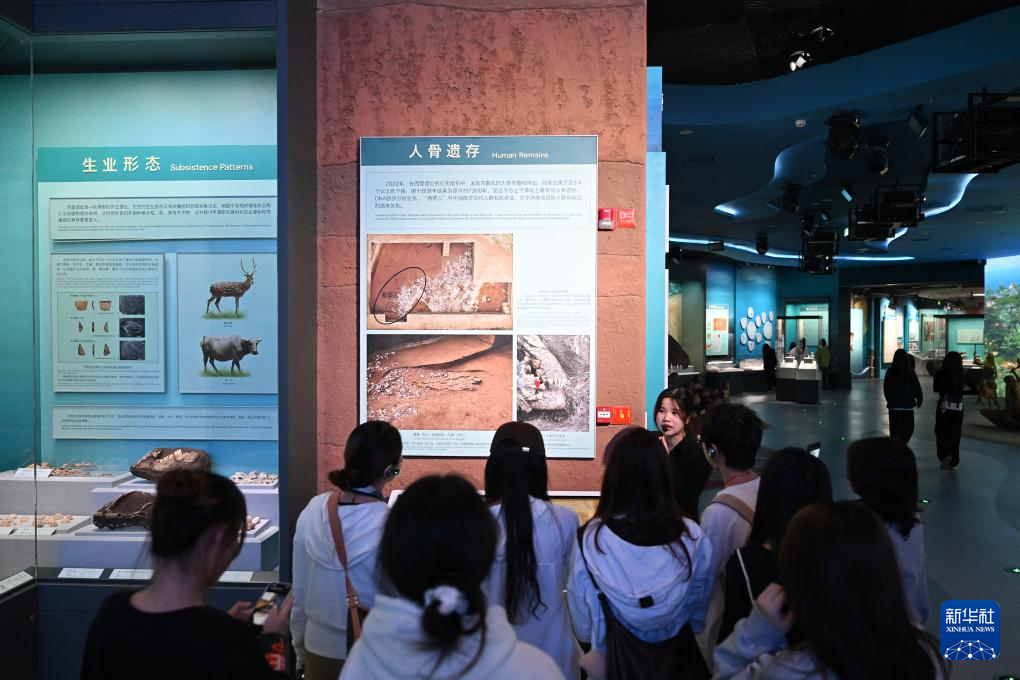 4月9日,觀眾在中國考古博物館殼丘頭分館內參觀。