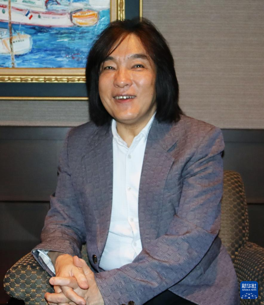 4月8日,日本作曲家和田薰在大阪交響音樂廳接受記者采訪。新華社記者 楊光 攝