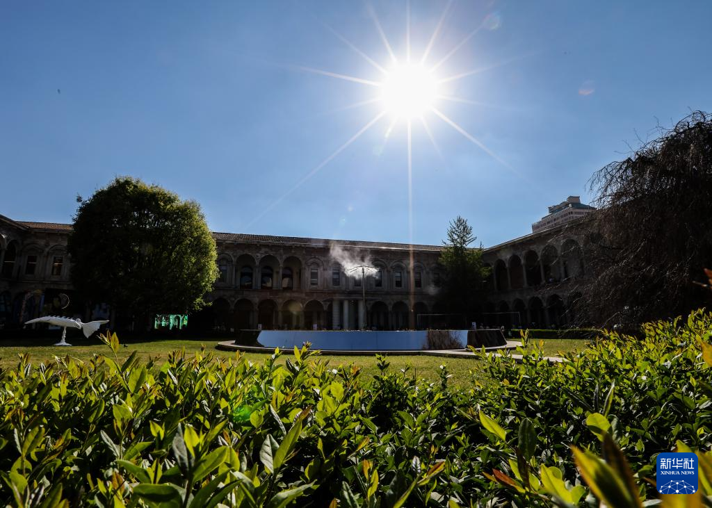 這是4月11日在意大利米蘭國立大學拍攝的中國設計師陳耀光的鏡面裝置作品《禮物》。