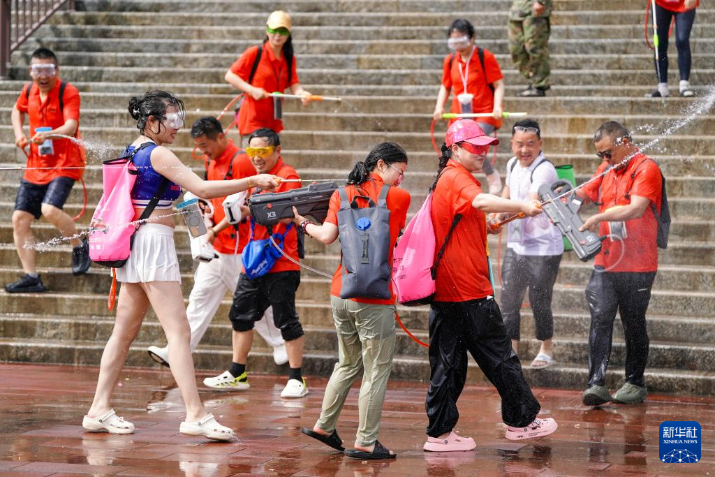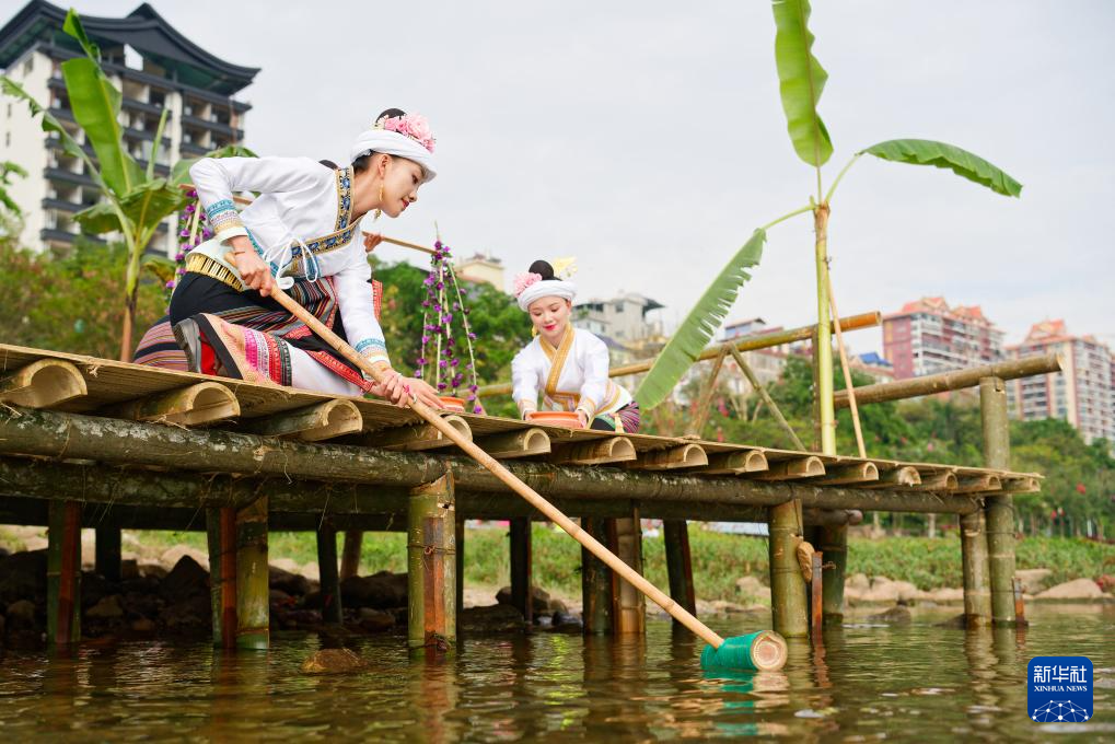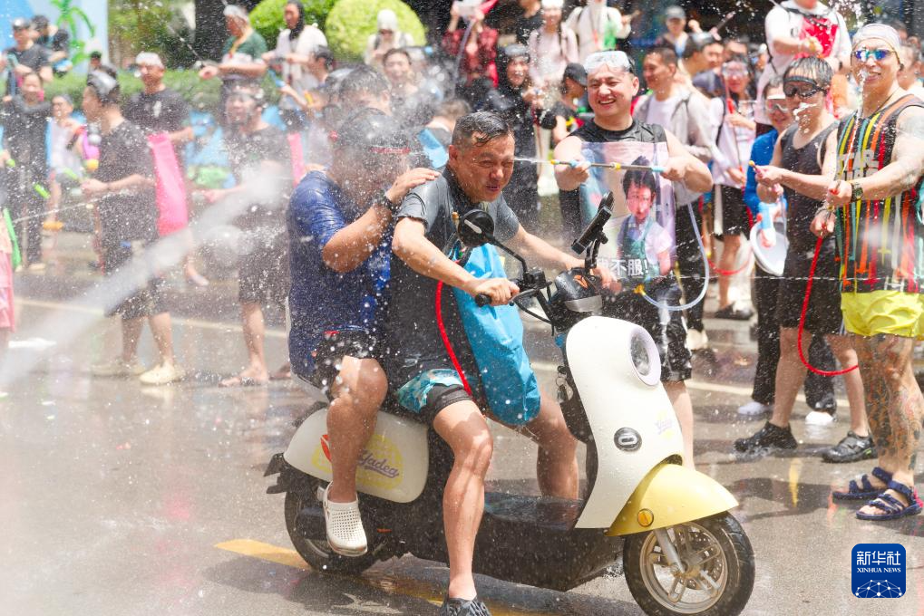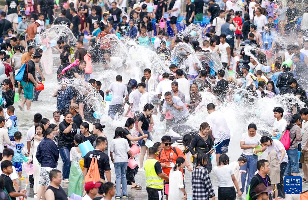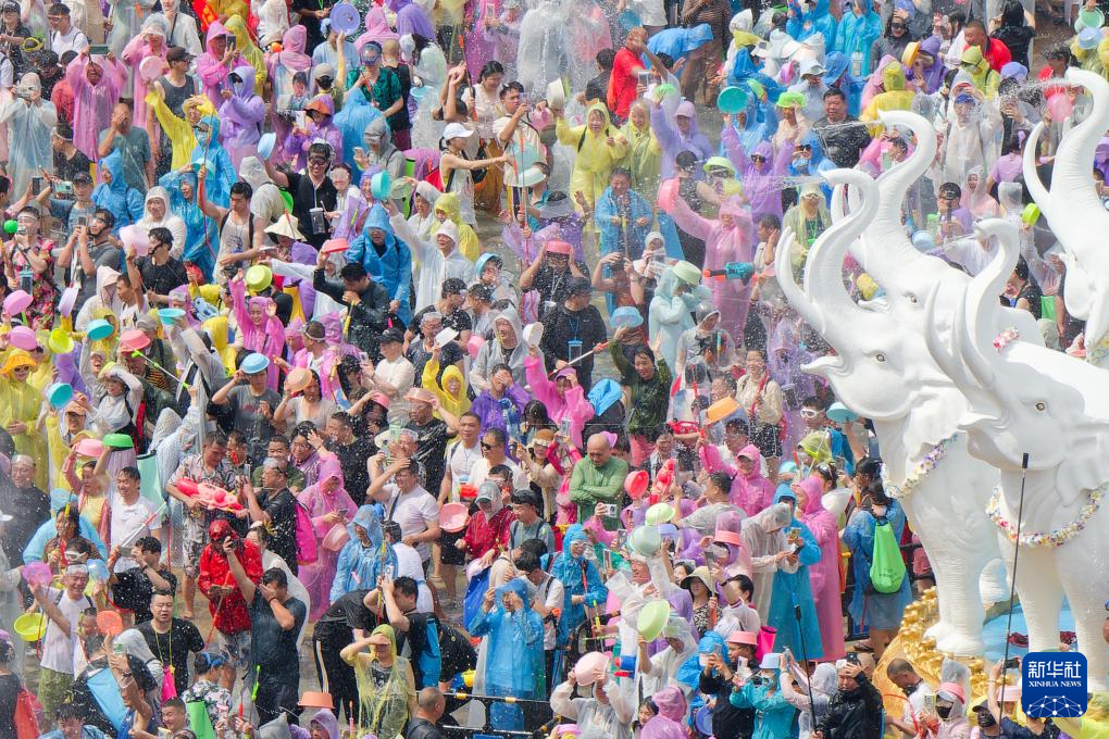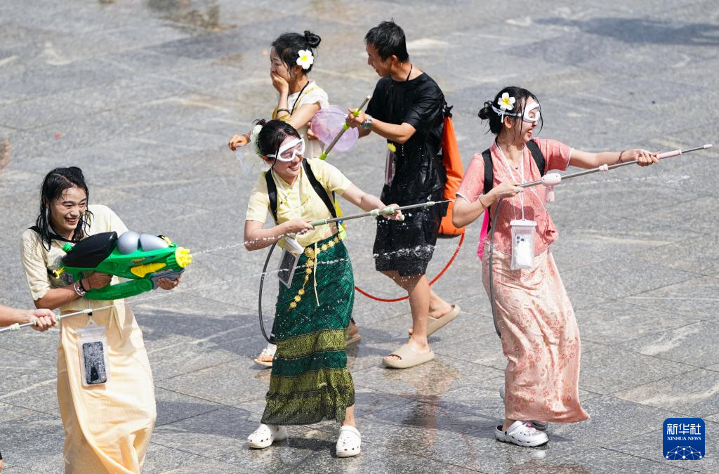 當日,云南多地舉行潑水節活動,各族群眾和游客用相互潑水的方式互送祝福,慶祝潑水節。
