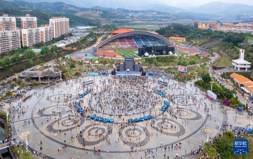 這是4月15日拍攝的云南省臨滄市耿馬傣族佤族自治縣勐相濕地公園廣場潑水節現場(無人機照片)。