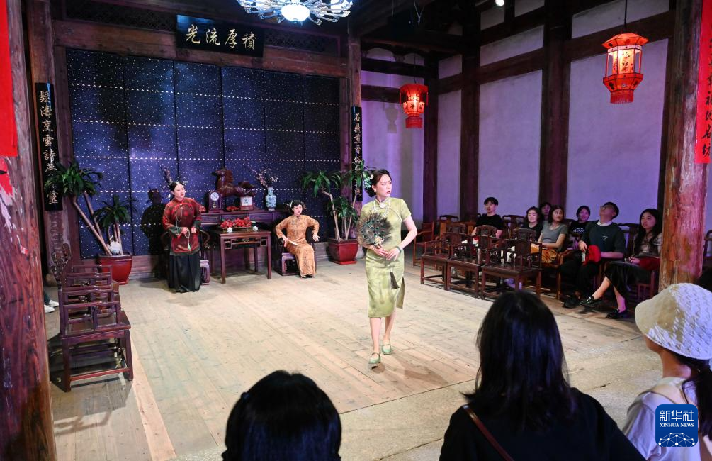 4月18日,演員在福州三坊七巷宮巷18號的古厝里表演庭院浸入式戲劇《雀起無聲》。