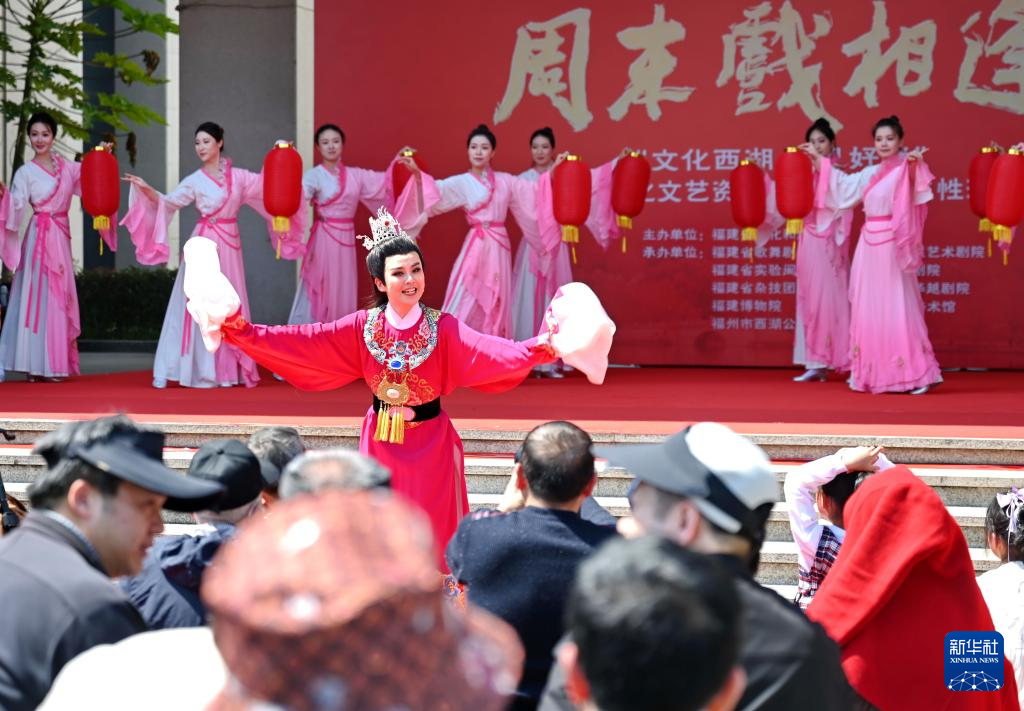 3月22日,福建芳華越劇院演員在福州西湖公園表演越劇《紅樓夢》。