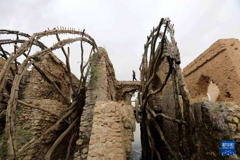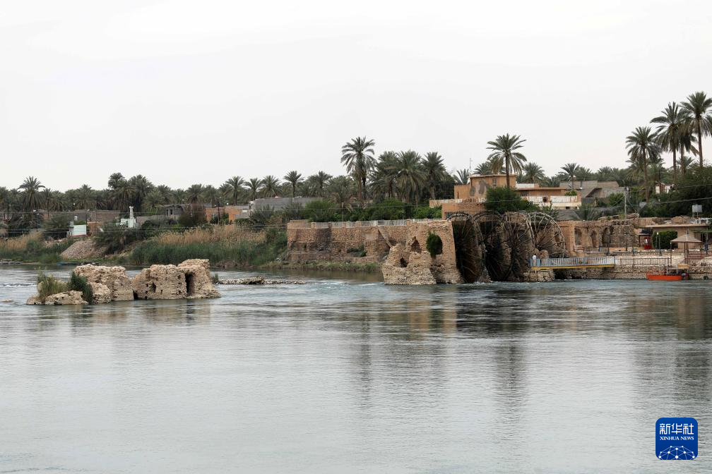 這是4月21日在伊拉克安巴爾省拍攝的幼發拉底河上的傳統水車。
