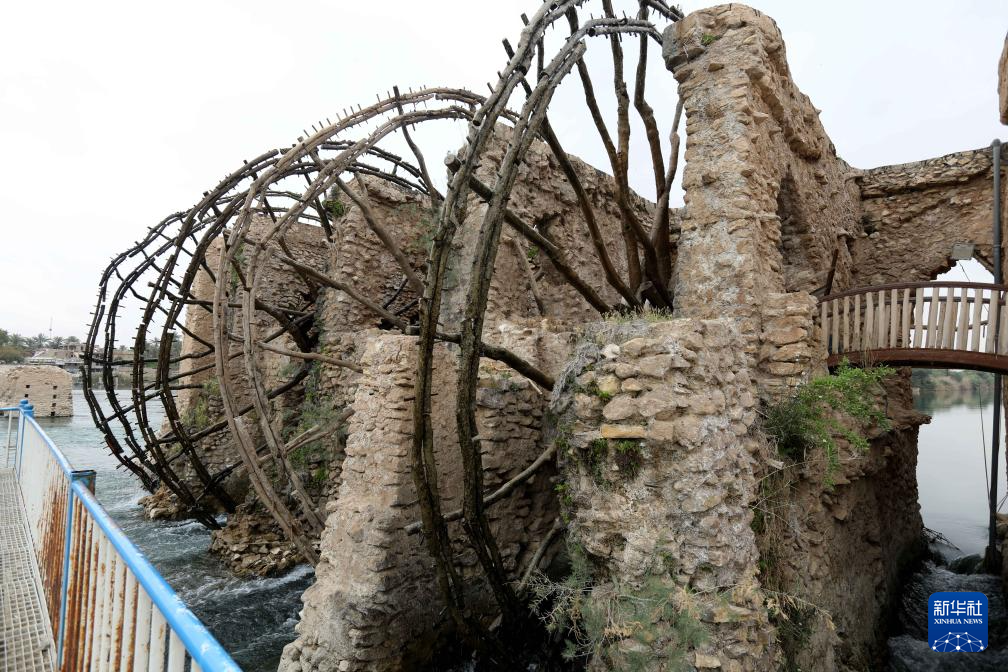 伊拉克傳統水車以直徑8至12米的木輪為主體,垂直安裝在河流中的石制基座之間。水流推動木輪轉動,固定在木輪外周的陶罐汲取河水,然后轉動至木輪頂端,將河水傾倒進灌溉水道。伊拉克傳統水車曾長期應用于河流水位低于農田地勢的農耕區域,被認為是一種高效的灌溉工具。2021年,伊拉克傳統水車及其制作工藝被列入聯合國教科文組織人類非物質文化遺產代表作名錄。