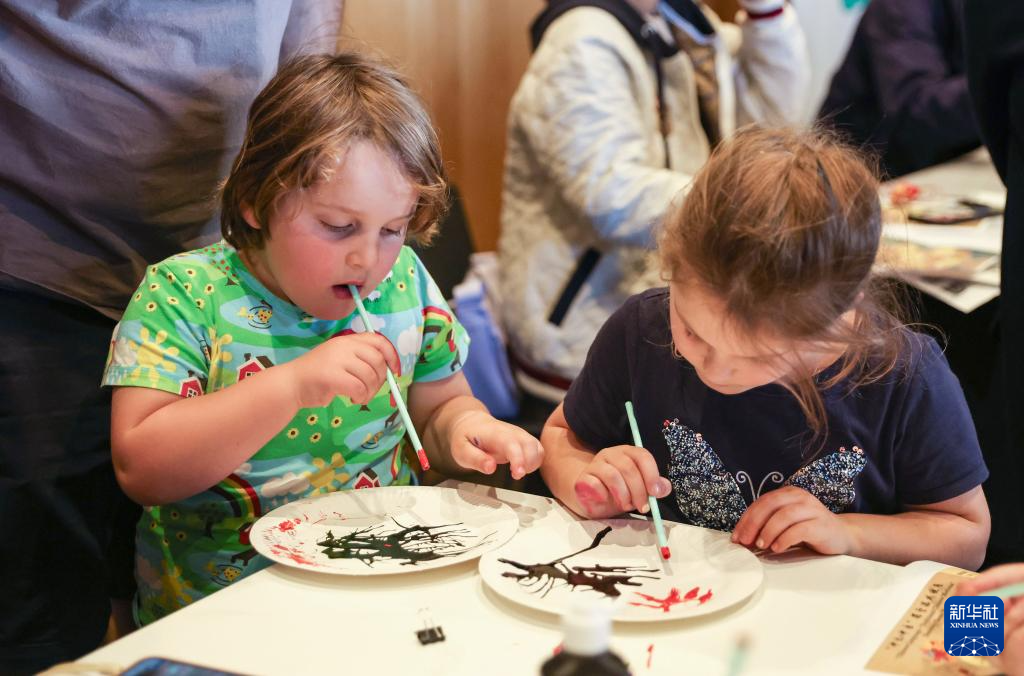 4月27日,在新西蘭克賴斯特徹奇,小朋友體驗吹畫。