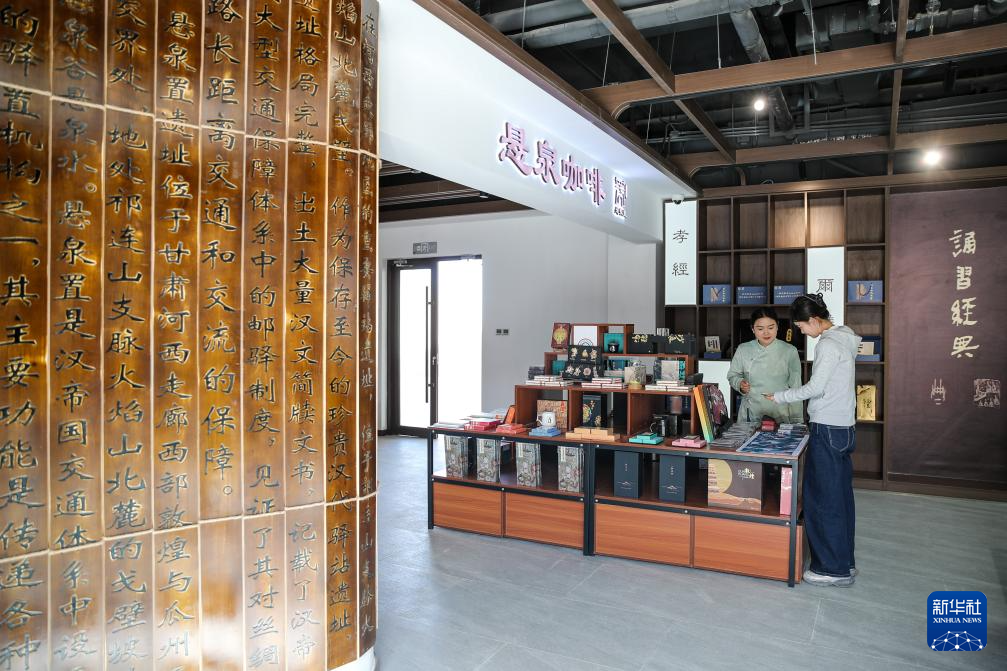 4月29日,游客在懸泉置遺址景區挑選文創產品。