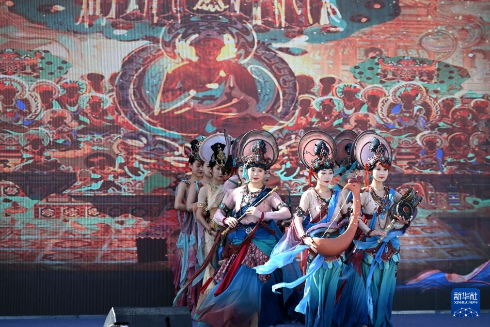 4月29日,演員在懸泉置遺址景區開園儀式上表演。