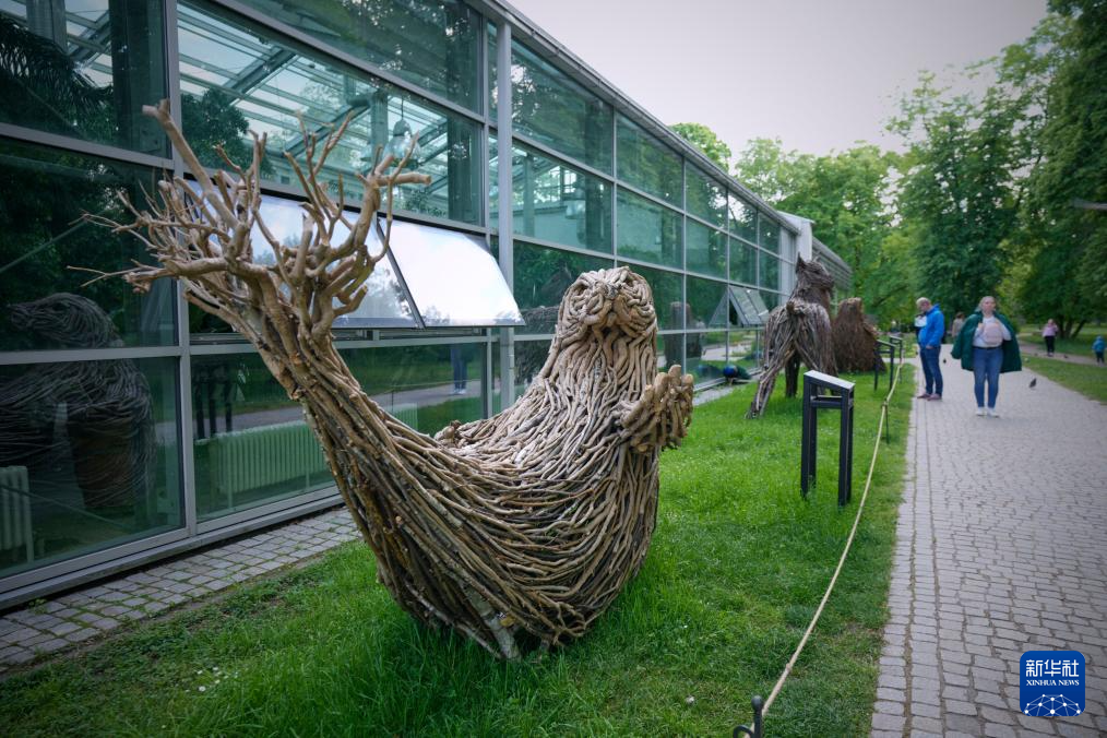 為了紀念世界自然基金會波蘭分會成立25周年,華沙瓦津基公園近日展出了以常春藤、樺樹、赤楊和榆樹枝條等材料制作的動物雕塑。