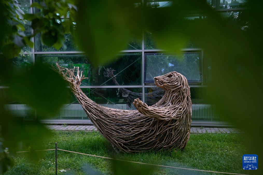 這是5月6日在波蘭首都華沙拍攝的海豹樹枝雕塑。