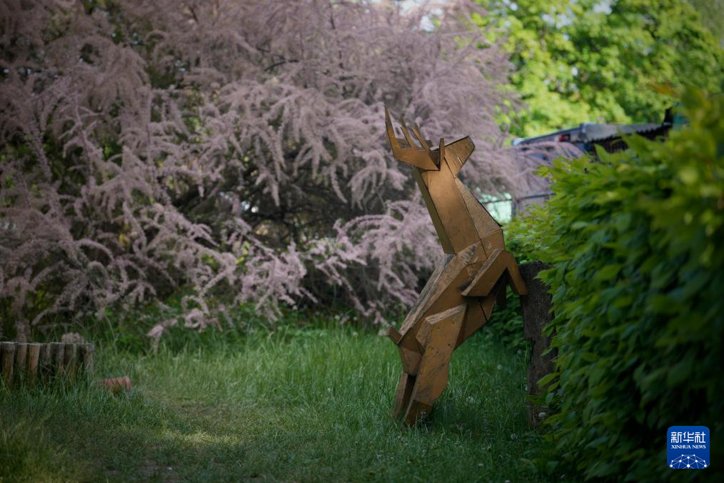 這是5月6日在波蘭首都華沙拍攝的麋鹿雕塑。