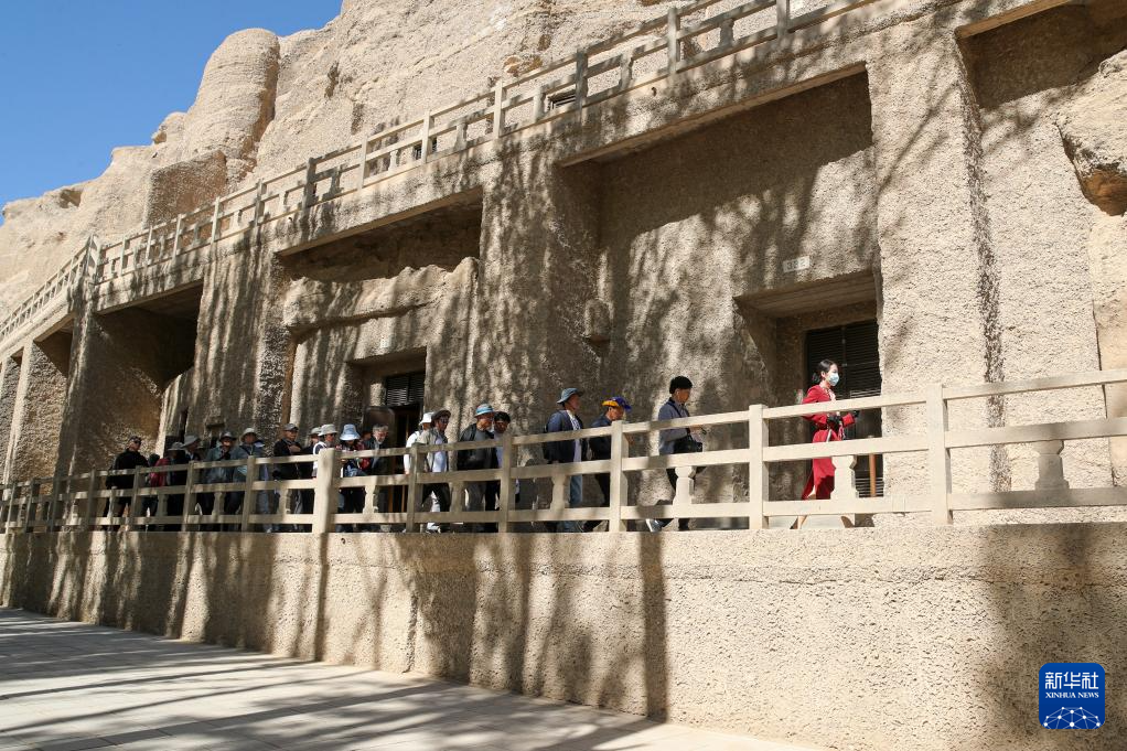 5月10日,韓國游客團在莫高窟參觀游覽。