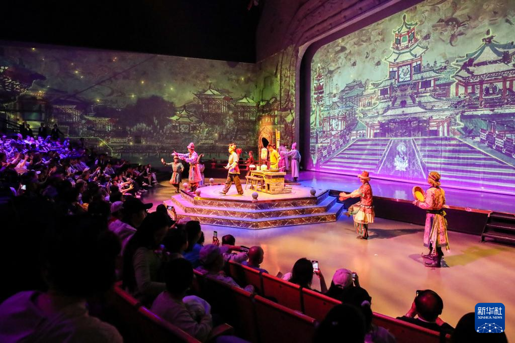 5月9日晚,游客觀看大型洞窟式沉浸體驗劇《樂動敦煌》。