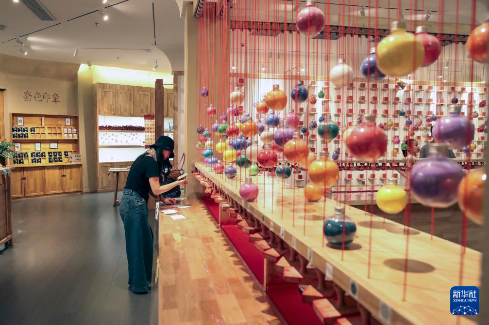 5月10日,游客在敦煌文旅新打卡地敦煌印局體驗文創印章。