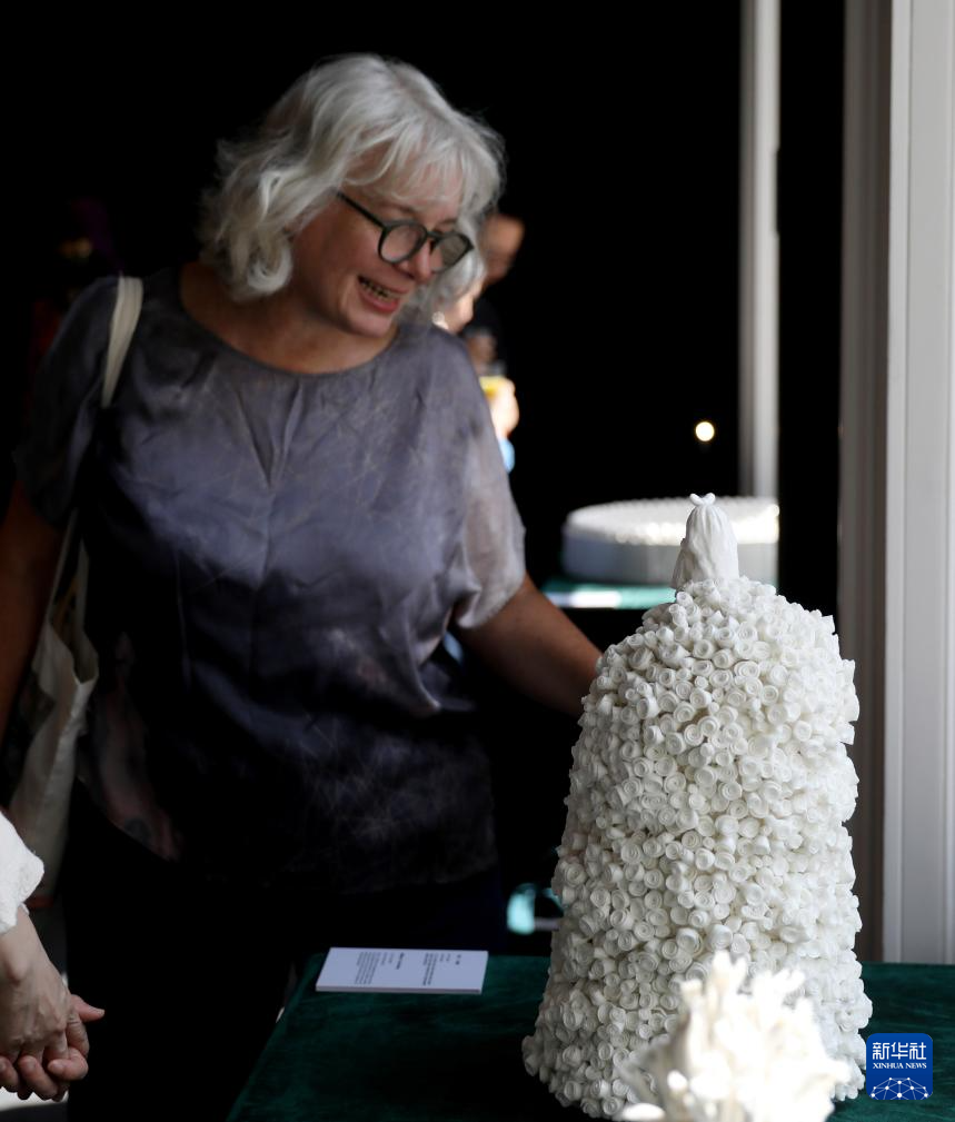 5月12日,在英國倫敦,一名女子在倫敦工藝周中國國家館開幕活動上參觀。
