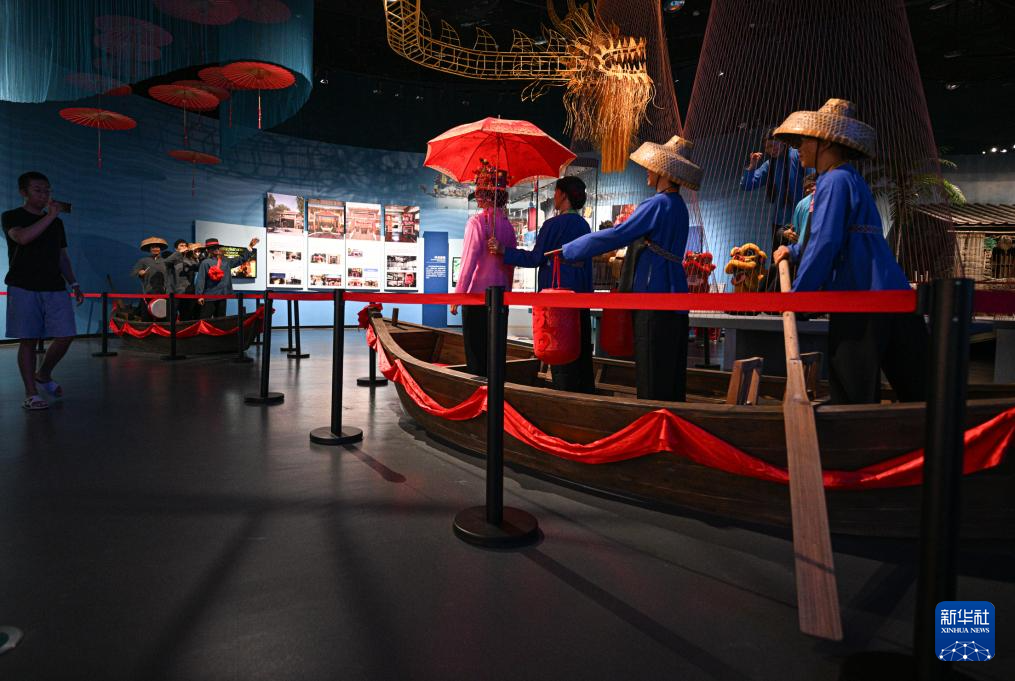5月13日在海南疍家博物館拍攝的展示疍家人舉行水上婚禮的場景。