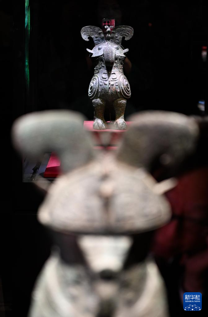 這是5月18日拍攝的“中華文明起源系列展:看·見殷商”展覽中一對出土于殷墟婦好墓的鸮尊。這兩件鸮尊分別藏于中國國家博物館(后)和河南博物院。