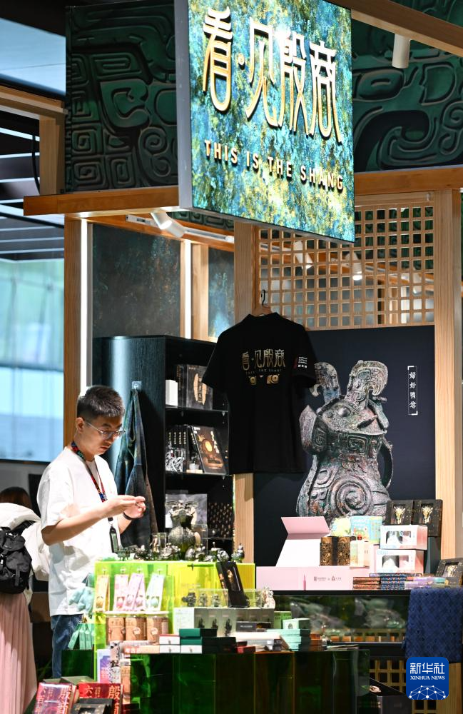 這是5月18日拍攝的“中華文明起源系列展:看·見殷商”展覽文創商店。