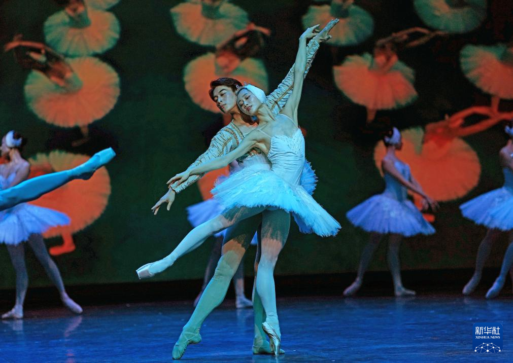在上海大劇院舉行的慶祝上海芭蕾舞團經典版芭蕾舞劇《天鵝湖》全球首演十周年特別活動上,上海芭蕾舞團演員吳虎生和戚冰雪在演出《天鵝湖》精彩片段(2025年2月15日攝)。
