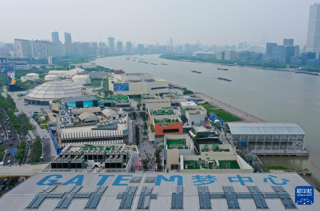 坐落在黃浦江畔的西岸夢中心(5月17日攝,無人機照片)。