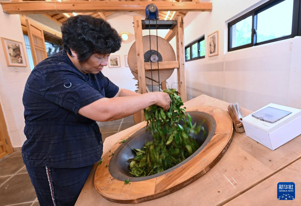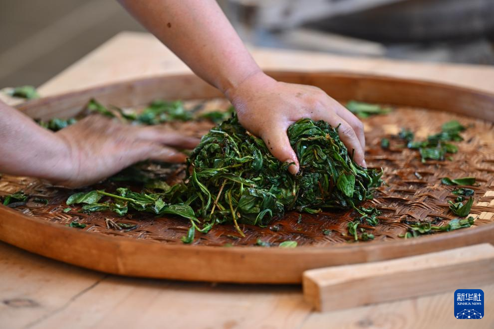 5月7日,國家級非物質文化遺產武夷巖茶(大紅袍)制作技藝省級代表性傳承人游玉瓊展示巖茶揉捻工藝。