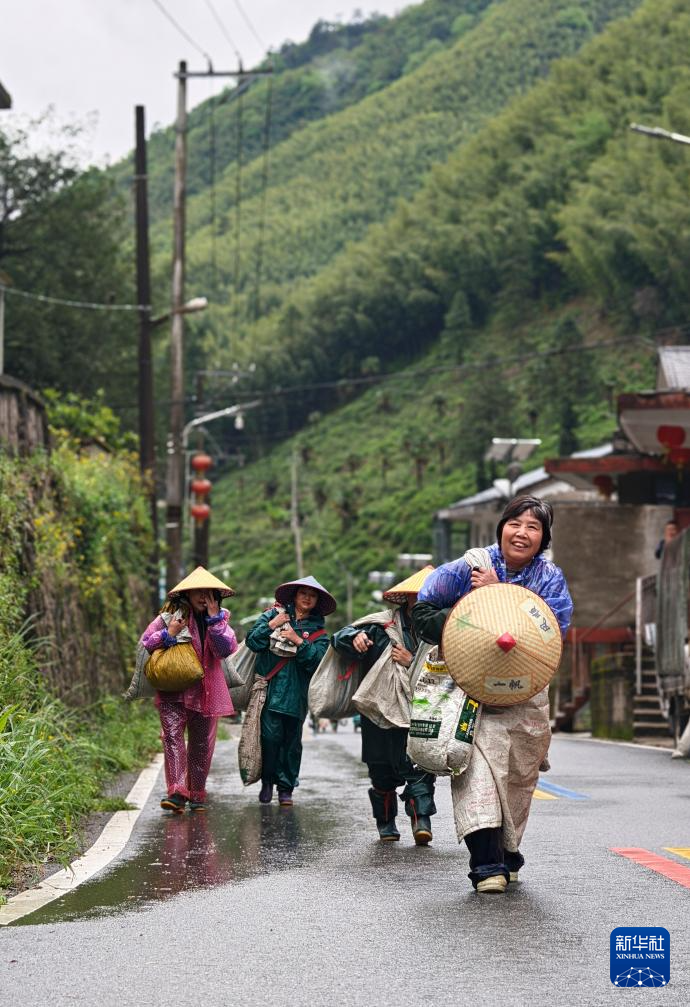 5月9日,在武夷山桐木村,采茶工采茶歸來。