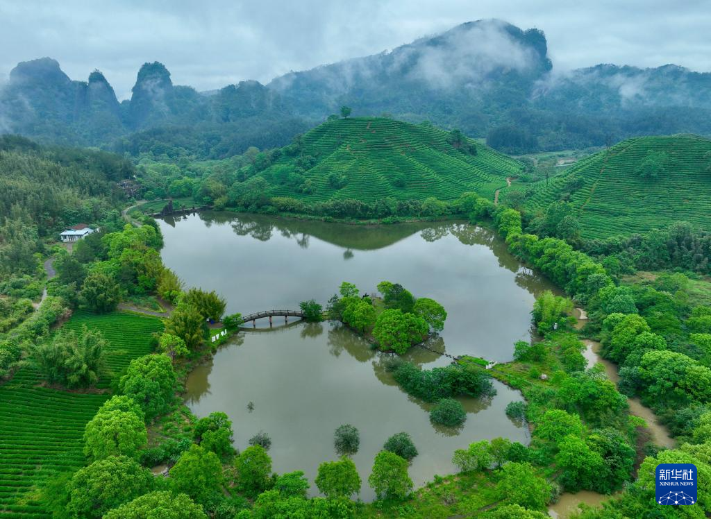 這是武夷山齊云峰景區一處山水茶園景觀(5月8日攝,無人機照片)。