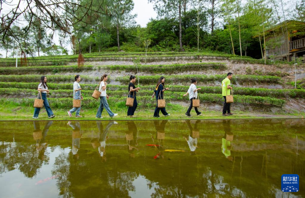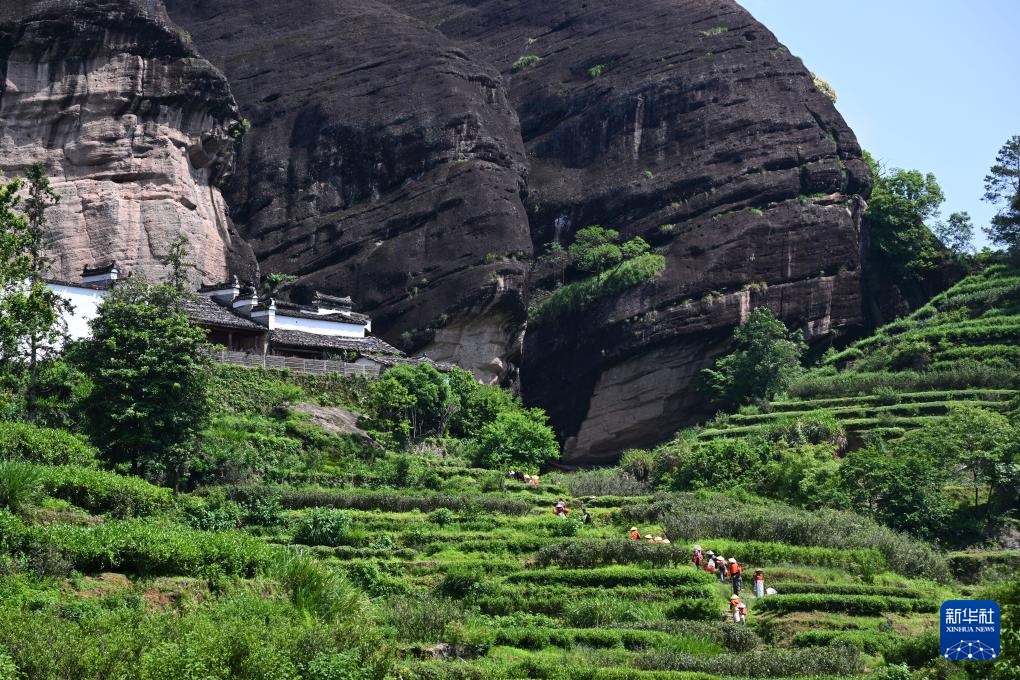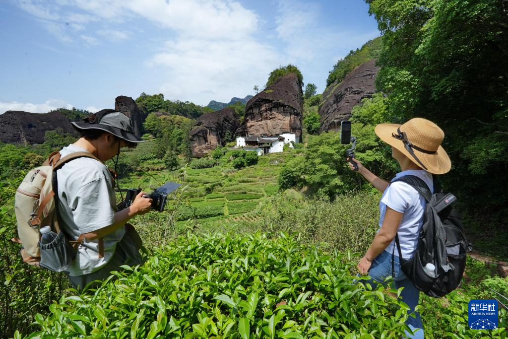 5月7日,在武夷山體驗巖茶采摘制作的游客結伴出行。