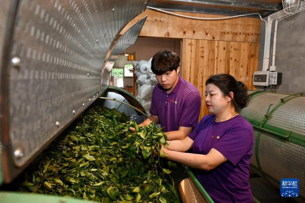 5月6日,武夷山茶人林麗娟(右)向兒子傳授做茶工藝。
