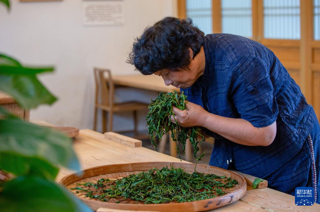 5月7日,國家級非物質文化遺產武夷巖茶(大紅袍)制作技藝省級代表性傳承人游玉瓊展示巖茶傳統制作技藝。