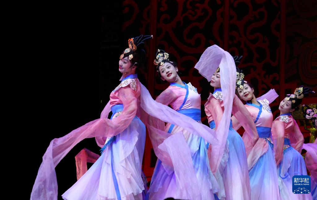 5月20日,演員在法國巴黎莫加多劇院里向觀眾呈現大型音樂舞蹈史詩《編鐘樂舞》。新華社記者 唐霽 攝
