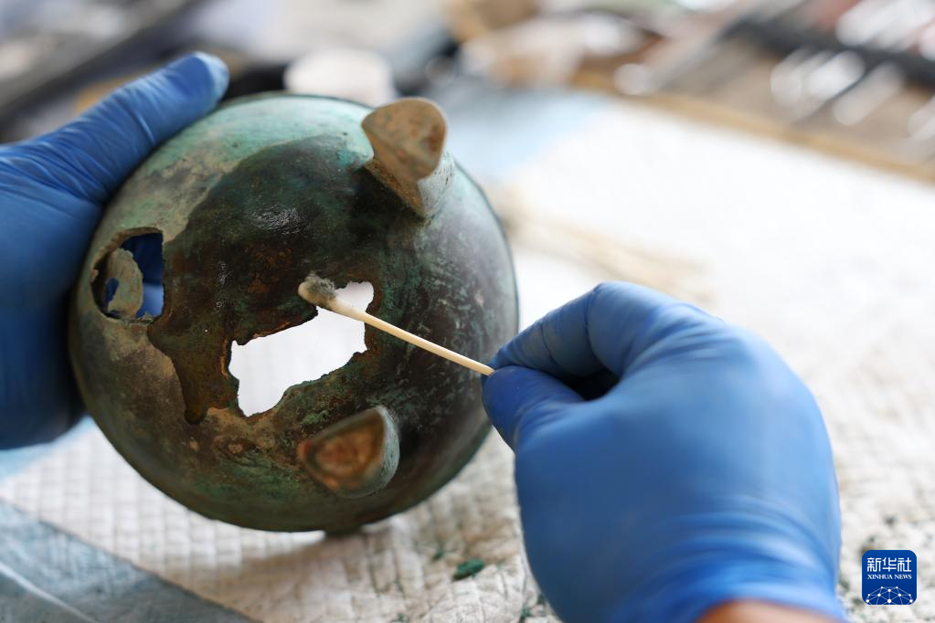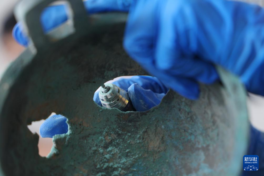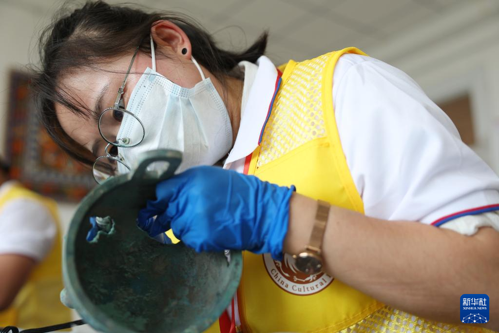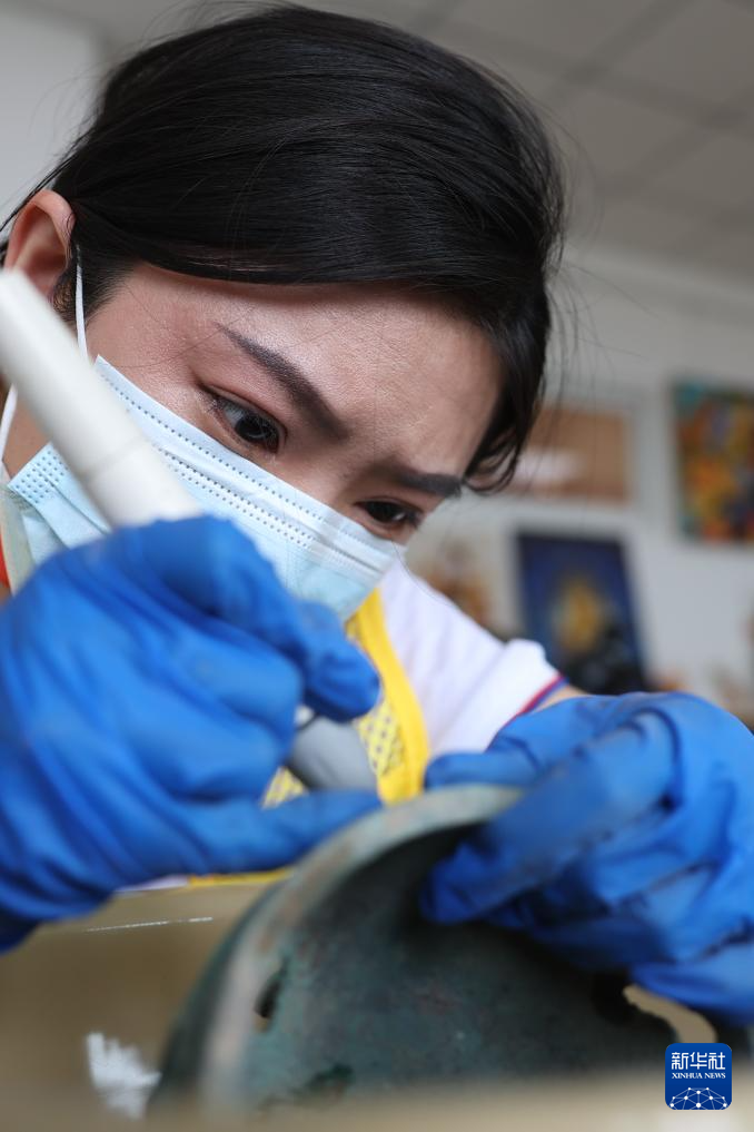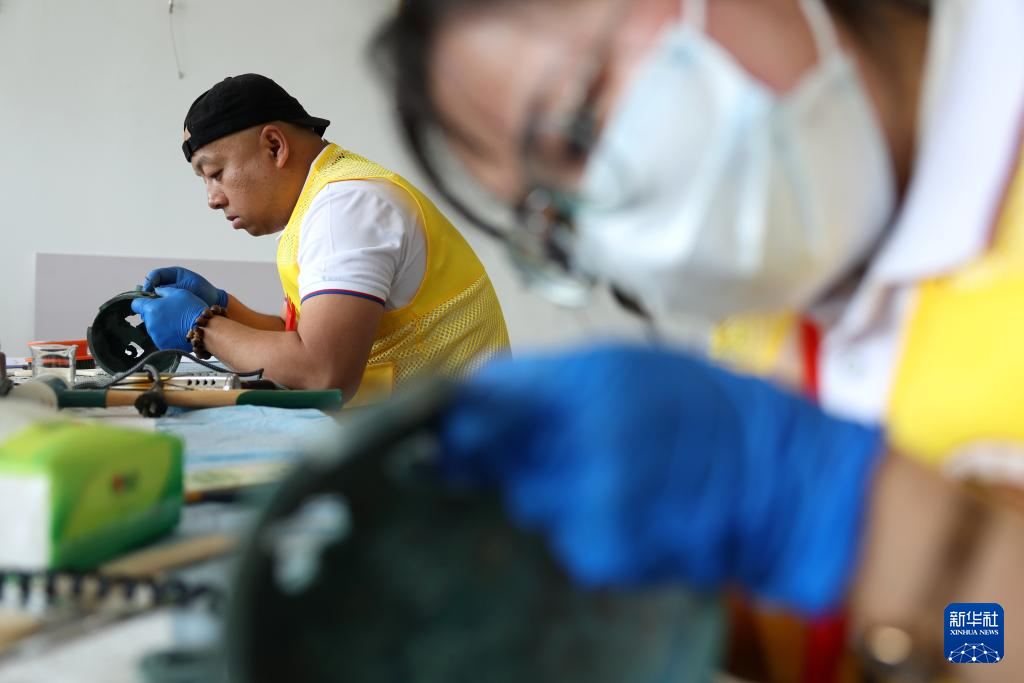 5月22日,來自新疆維吾爾自治區博物館的參賽選手劉子虔在金屬文物修復比賽中。