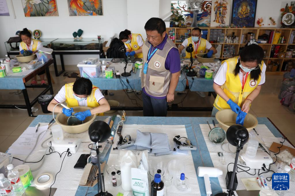 5月22日,來自青海省文物考古研究院的參賽選手嚴明圣在陶瓷文物修復比賽中。